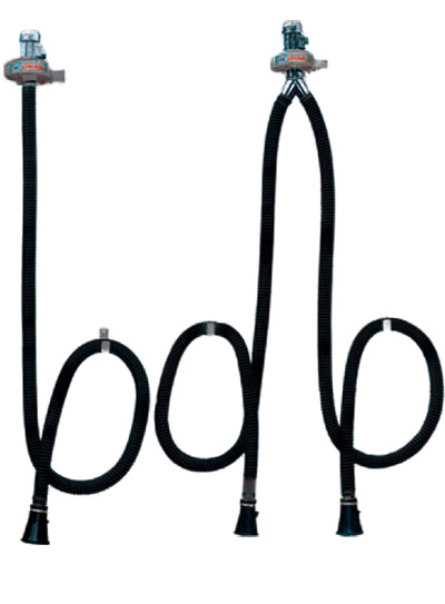 nozzle for twin exhaust-pipes with manual locking gripper.