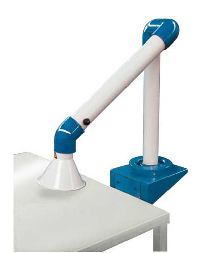 Articulated arm for laboratories and restoration. Applications: the CORAL PROBIS mod. free-standing articulated arm represents the best technical solution and has the necessary versatility for extracting fumes emitted by soldering, laboratory vapours, electronics in general, small-scale craft work goldsmithery, dental laboratories, research laboratories, analytical laboratories, etc.
