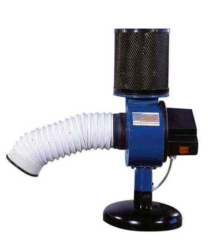 Portable filter The filter for the extraction and deodorization of soldering fumes, F 100 model, has been studied and built with the maximum rationality to obtain very small clearance but, high extraction efficiency at the same time. Designed for the electronics industry and for electronics laboratories, it can also be used in the chemical-pharmaceutical sectors, vocational schools and the gold industry. Technical features: filtering takes place through two work stages: filtering cartridge plus activated carbon.